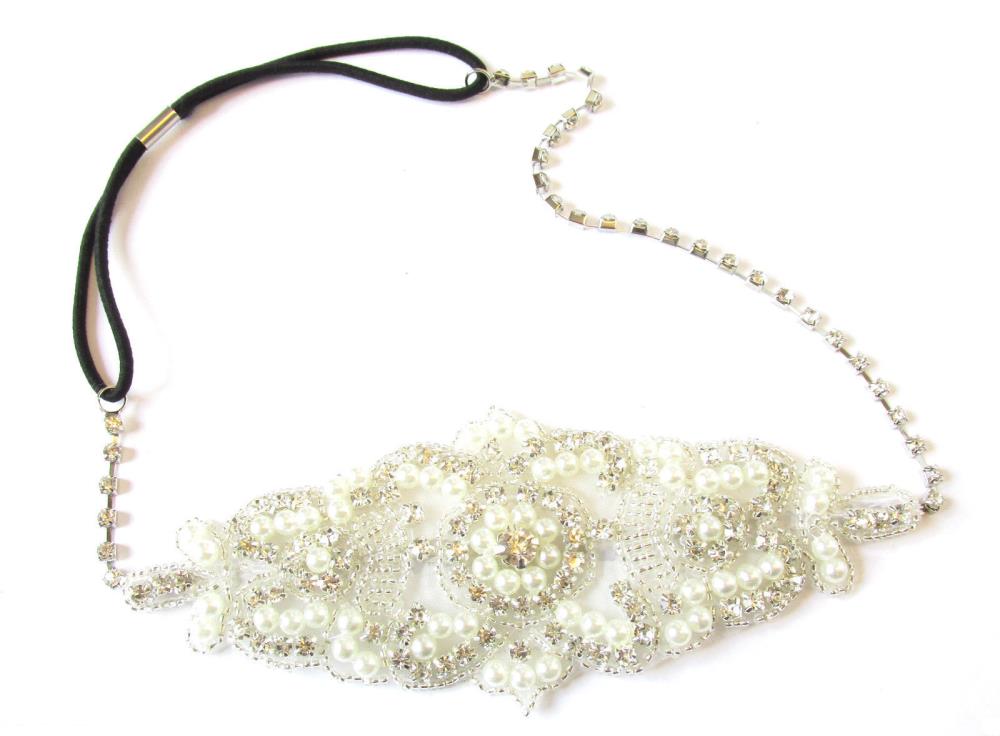 Beautiful vintage style headband! This headband is stunning and perfect for adding vintage style glamour to your hair. Featuring ivory white faux pearls, seed beads and rhinestones/diamantes on a silver tone diamante/rhinestone headband. Elasticated to fit. 6cm at it's widest, on a 0.3cm wide headband.